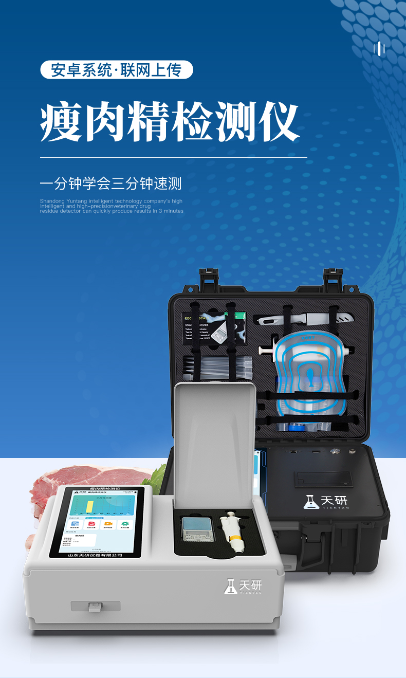瘦肉精檢測儀可現(xiàn)場快速檢測鹽酸克倫特羅、萊克多巴胺、沙丁胺醇、己烯雌酚、喹乙醇等。儀器預留其他項目檢測程序和端口,根據(jù)日后需求可方便的自主增加檢測項目。日后可升級為檢測抗生素、獸藥殘留、動物疫病、病害肉、的綜合類型儀器