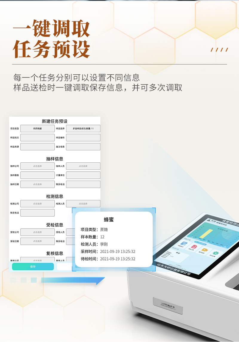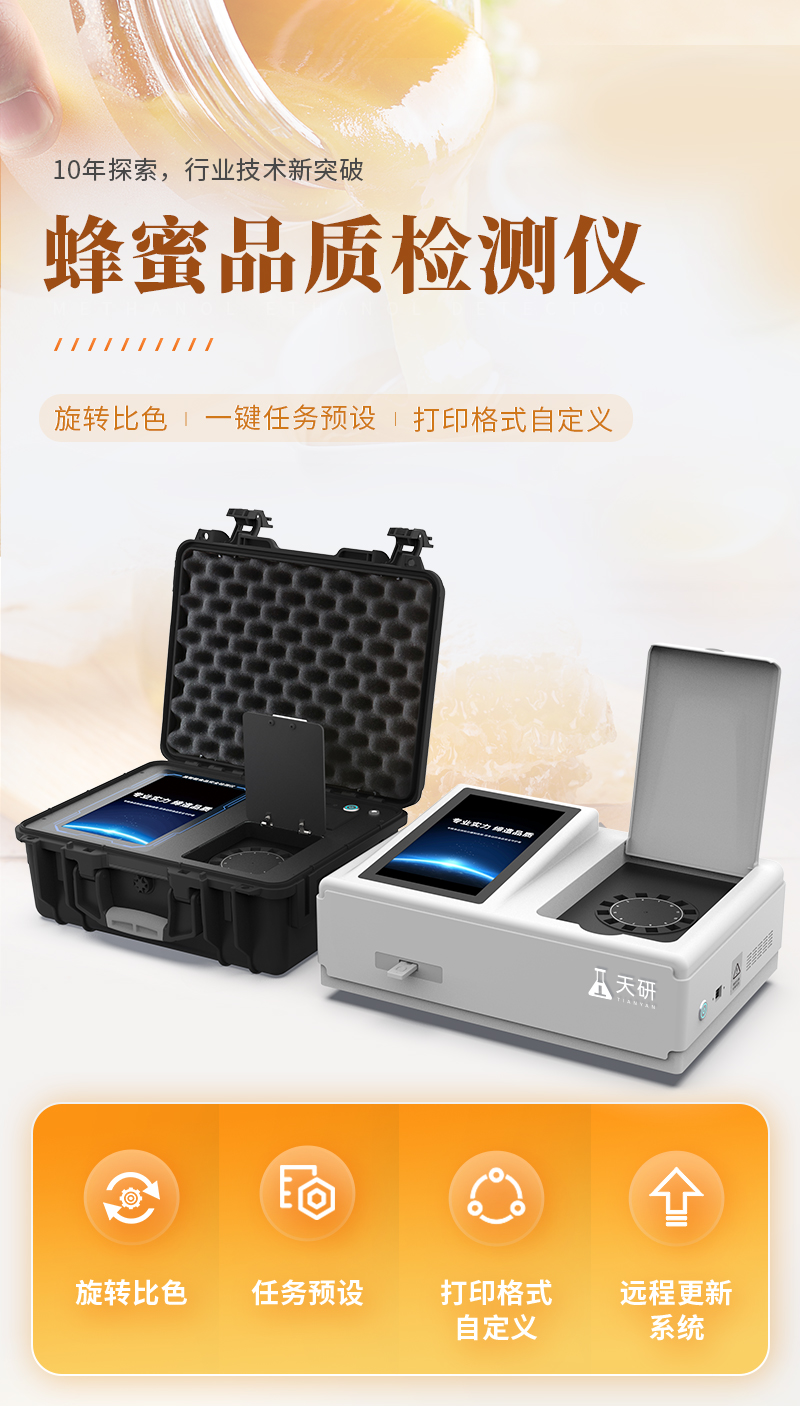 產(chǎn)品描述:產(chǎn)品介紹: 山東天研儀器有限公司生產(chǎn)的高智能蜂蜜檢測儀為集成化食品安全快速檢測分析設備,采用臺式一體化設計,可快速檢測200多種食品安全項目,包含非食用化學物質(zhì)、濫用食品添加劑、農(nóng)藥殘留、獸藥殘留、重金屬、病害肉、營養(yǎng)強化劑、抗生素類殘留、激素類殘留、真菌毒素類殘留、化學類殘留等項目的定性【詳情】