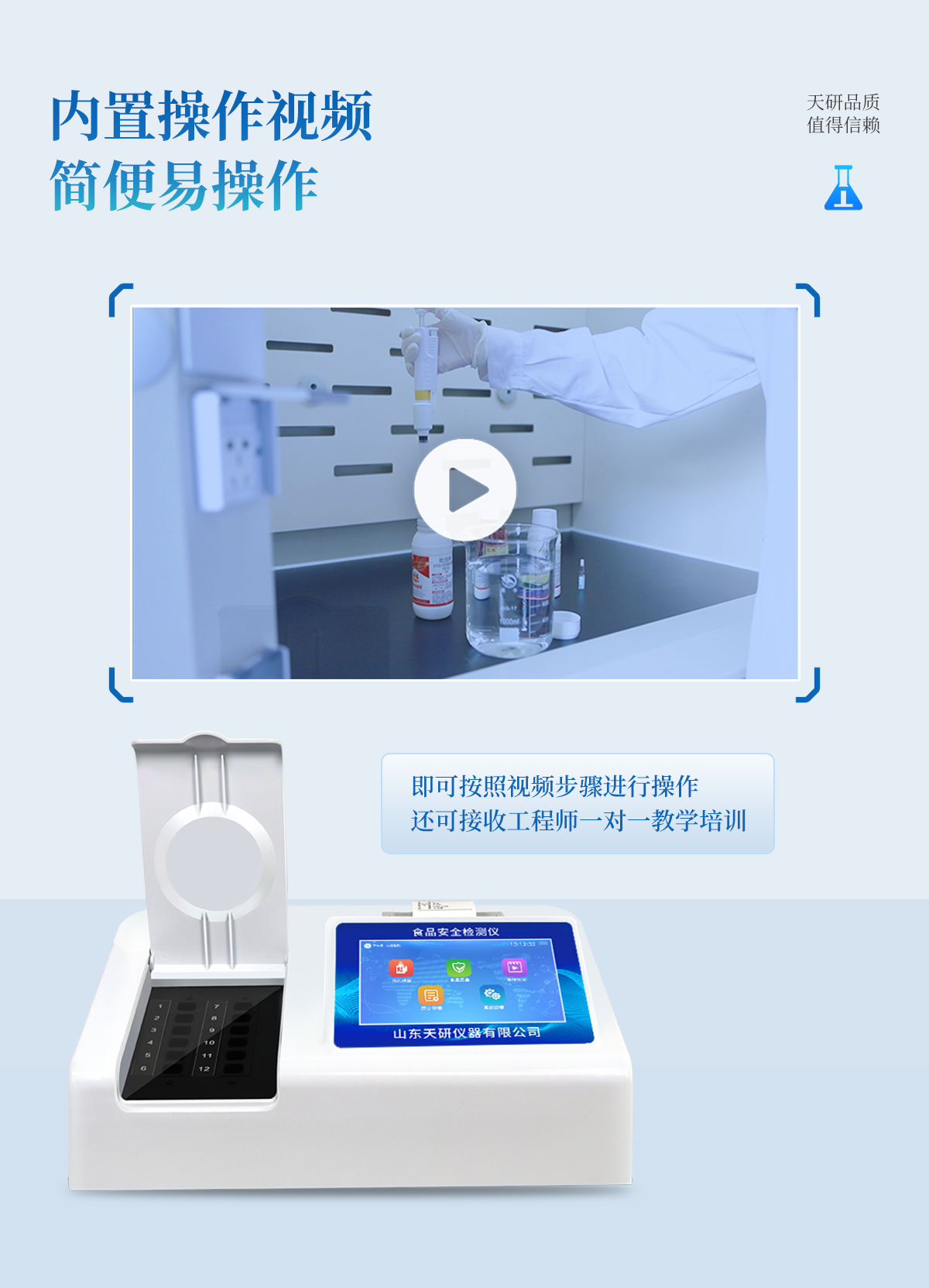 產(chǎn)品描述:產(chǎn)品介紹:多功能食品安全檢測儀可快速檢測200多項目,包含非食用化學(xué)物質(zhì)、濫用食品添加劑、農(nóng)藥殘留、獸藥殘留、重金屬、病害肉、營養(yǎng)強化劑、抗生素類殘留、激素類殘留、真菌毒素類殘留、化學(xué)類殘留等現(xiàn)場的定性定量檢測。該多功能食品安全檢測儀為集成化食品安全快速檢測分析設(shè)備,廣泛應(yīng)用于市場監(jiān)管局、檢測中心、衛(wèi)生【詳情】