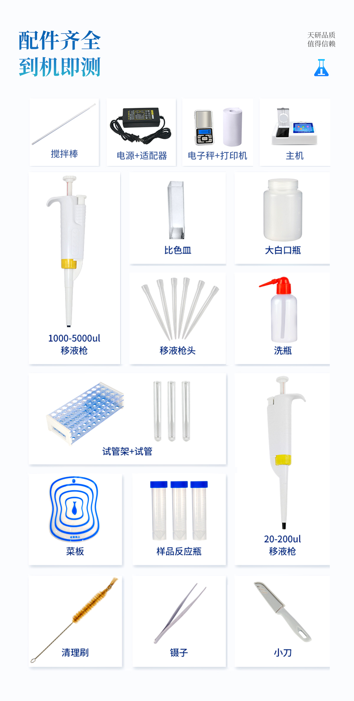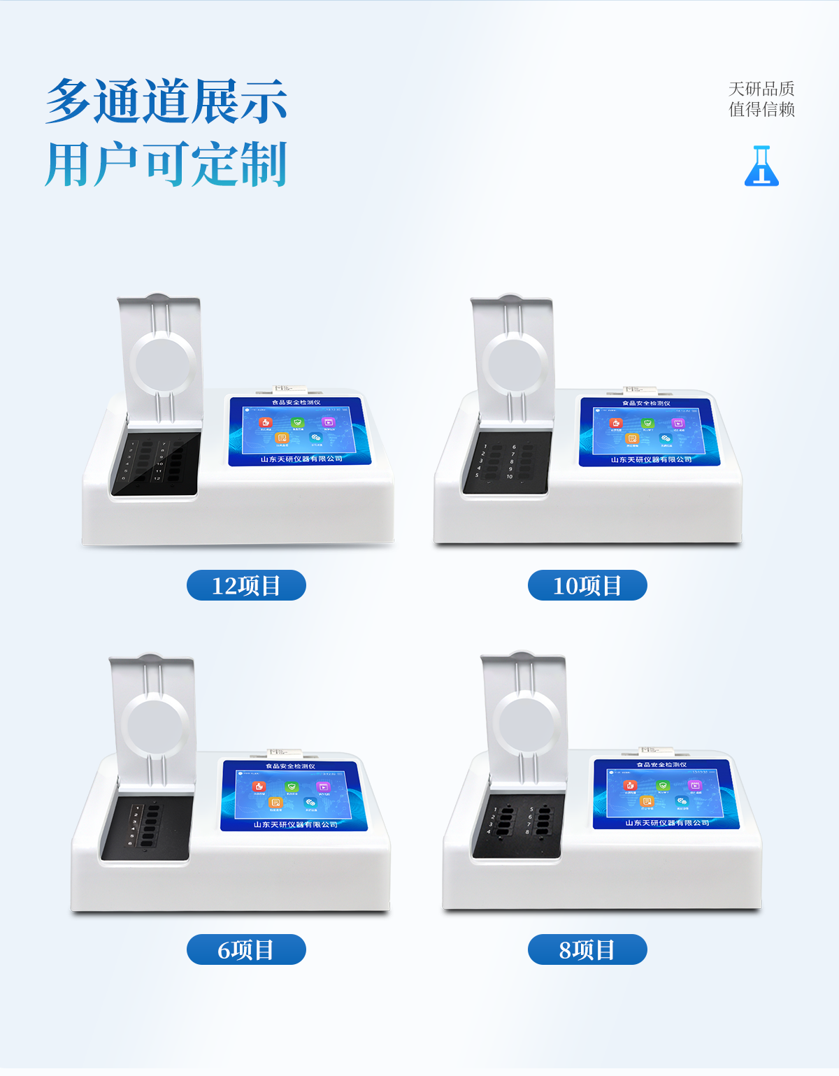 多功能食品安全檢測(cè)儀可快速檢測(cè)200多項(xiàng)目,包含非食用化學(xué)物質(zhì)、濫用食品添加劑、農(nóng)藥殘留、獸藥殘留、重金屬、病害肉、營養(yǎng)強(qiáng)化劑、抗生素類殘留、激素類殘留、真菌毒素類殘留、化學(xué)類殘留等現(xiàn)場(chǎng)的定性定量檢測(cè)。該多功能食品安全檢測(cè)儀為集成化食品安全快速檢測(cè)分析設(shè)備,廣泛應(yīng)用于市場(chǎng)監(jiān)管局、檢測(cè)中心、衛(wèi)生監(jiān)督部門、農(nóng)業(yè)部門、院校及各單位食堂、食品肉產(chǎn)品深加工企業(yè)、商超市場(chǎng)、司法部門、餐飲機(jī)構(gòu)、養(yǎng)殖場(chǎng)、屠宰場(chǎng)、檢驗(yàn)檢疫部門等單位使用。