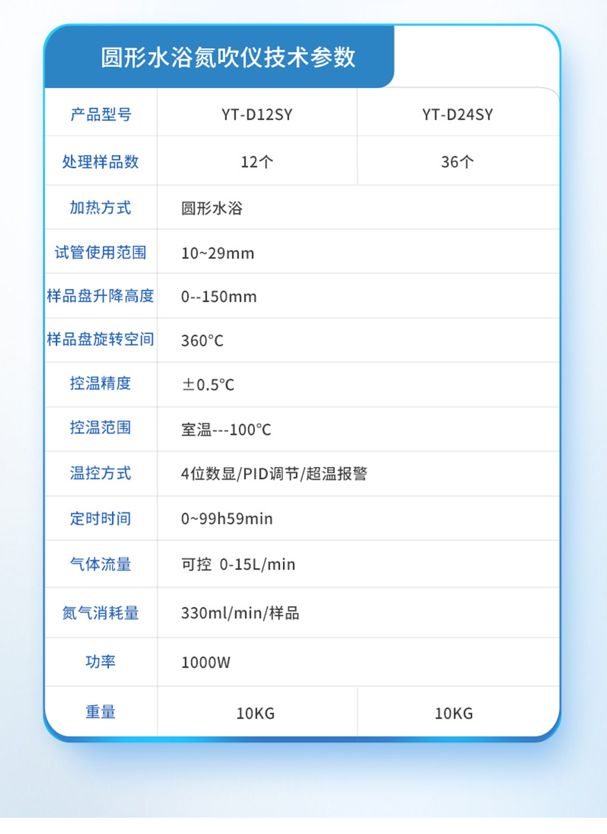 | YT-D24S | 24個 | Ф16mm | 330ml/min/樣品(可調(diào)節(jié)) | 0-15L/min | 試管架一個 | ±0.5℃ | 室溫---100℃ | 數(shù)顯控溫 | 340*200*460 | 600W | 7.5KG |
