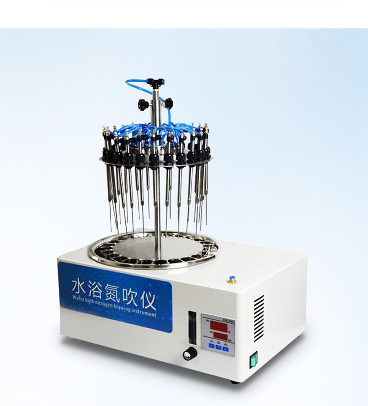 干式氮吹儀是氮氣濃縮裝置、氮氣吹掃儀的簡稱,主要用于大批量樣品在無氧下的濃縮或制備。廣泛應用于農(nóng)殘分析、商檢、食品、環(huán)境、制藥、生物制品等行業(yè), 氮吹儀是通過微電腦控制技術,加熱是通過高純鋁材料做為加熱介質(zhì),加熱速度快,達到控溫更加準確,控溫范圍廣,可以同時處理36組樣品.