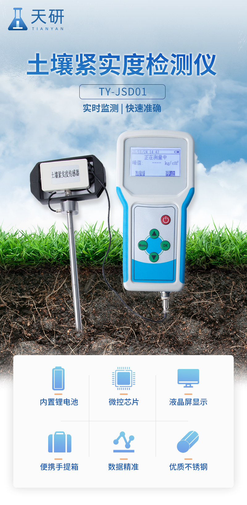 產(chǎn)品描述:儀器簡(jiǎn)介:本設(shè)備是一種由手持式采集儀和緊實(shí)度傳感器所組成的一套土壤墑情監(jiān)測(cè)系統(tǒng)。同時(shí)具備操作簡(jiǎn)便,攜帶方便,檢測(cè)迅速可靠等優(yōu)點(diǎn),在領(lǐng)域中可謂獨(dú)樹(shù)一幟。手持式采集儀可根據(jù)用戶需要出廠配置GPS、GPRS數(shù)據(jù)上傳等功能,設(shè)備中的數(shù)據(jù)也可以通過(guò)USB數(shù)據(jù)線連接電腦,并將歷史數(shù)據(jù)導(dǎo)出到電腦中進(jìn)行數(shù)據(jù)分析。土壤緊實(shí)度又【詳情】