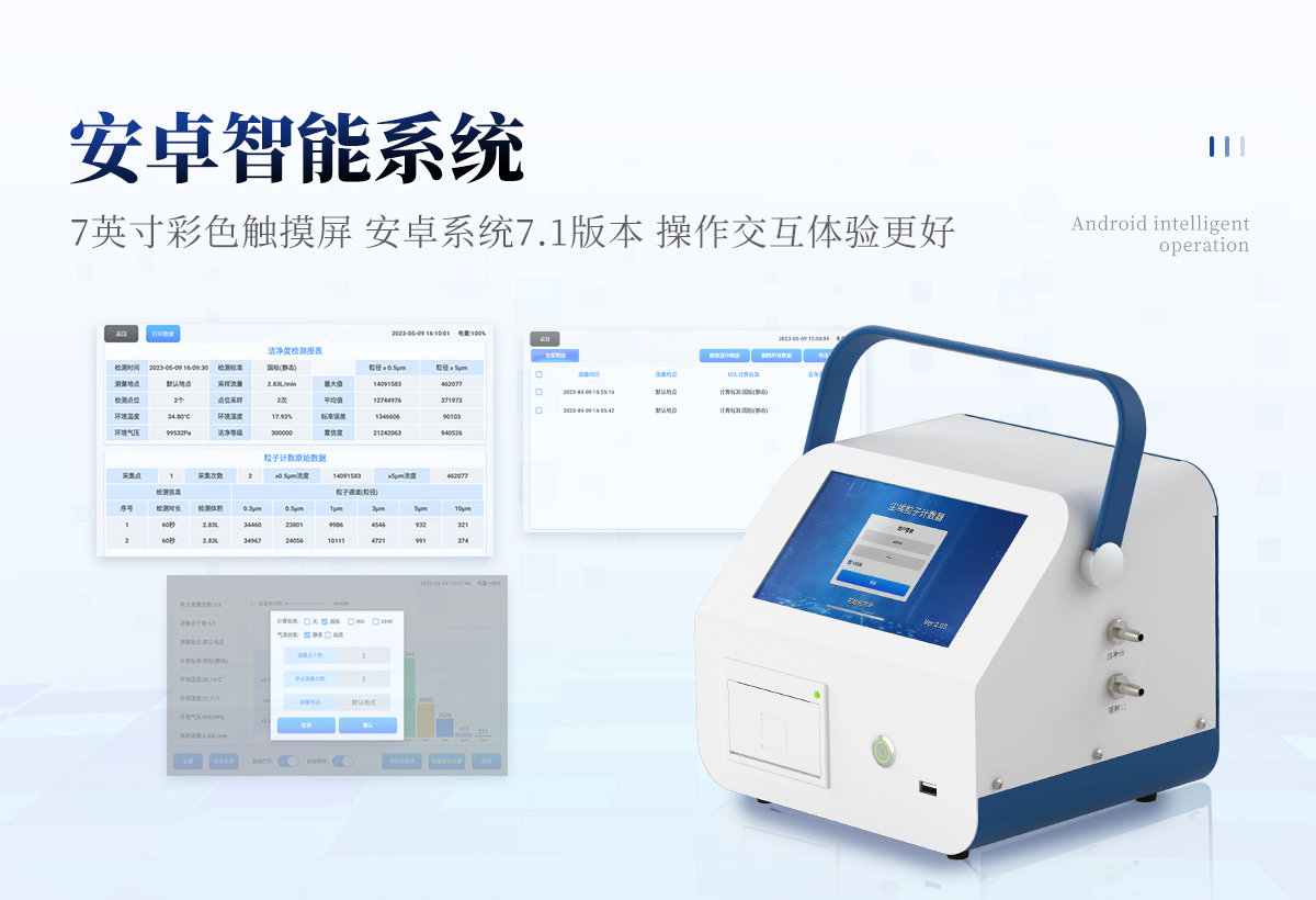 | 1、安卓系統(tǒng)7.1版本,操作交互體驗(yàn)更好。 | 2、內(nèi)置溫濕度傳感器、環(huán)境氣壓傳感器 | 3、核心部件光散射傳感器明顯消除腔體的雜散光,信噪比大為提高。從而使測量更準(zhǔn)確更可靠。 | 4、按95%置信度(UCL)計(jì)算,計(jì)數(shù)結(jié)果可換算成m3和ft3 | 5、依照凈化級別劃分和規(guī)定,自動判定凈化級別,使用便利。 | 6、帶審計(jì)追蹤功能,可查詢、可追溯、可控制,符合FDA 21CFR PART11規(guī)范 | 7、支持wifi、藍(lán)牙傳輸,數(shù)據(jù)可無線上傳;同時支持U盤拷貝數(shù)據(jù),免驅(qū)動插拔。 | 8、配置監(jiān)管平臺,檢測結(jié)果可直接無線傳至平臺,進(jìn)行潔凈度長短期分析,輔助管理。 | 9、內(nèi)置新一代高速熱敏打印機(jī),可選擇所需要打印的粒徑通道,靈活打印結(jié)果。 | 10、交直流兩用,內(nèi)置充電鋰電池,環(huán)保耐用可支持連續(xù)采樣6小時以上。 | 11、便捷簡易伸縮式云臺支架,安裝采樣操作更加方便。 |
