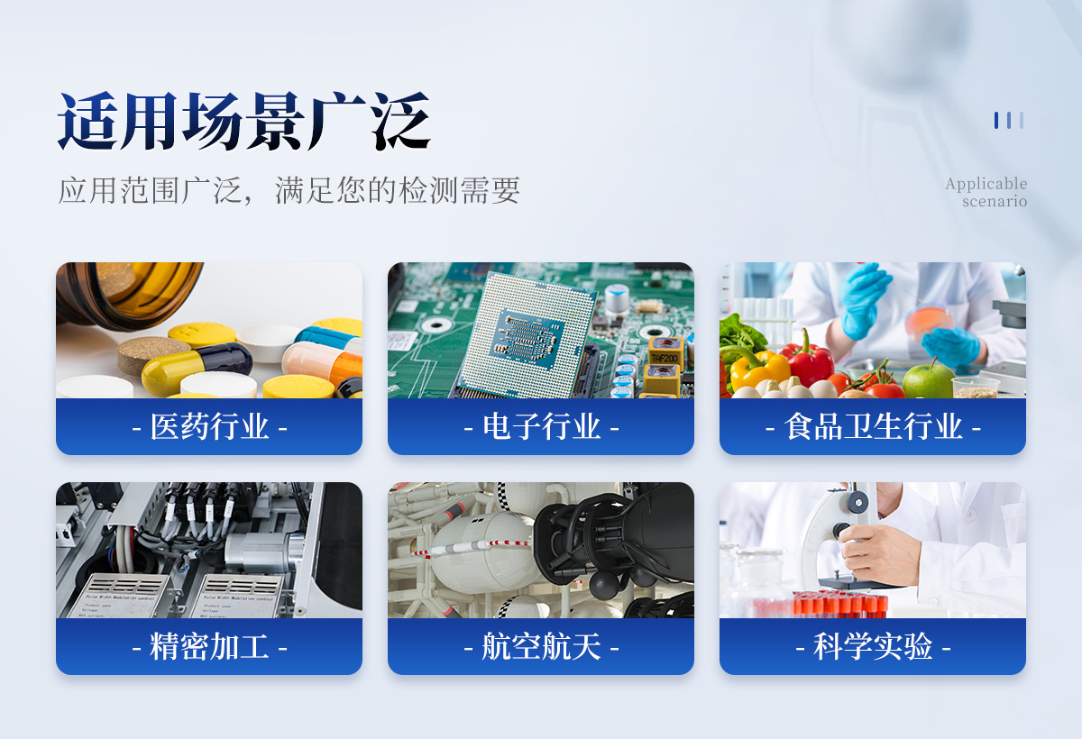 滿足醫(yī)藥行業(yè)(制藥廠、藥檢所、醫(yī)院手術(shù)室等);電子行業(yè)(半導(dǎo)體工廠、精密機(jī)械的生產(chǎn)加工等);食品衛(wèi)生行業(yè)(乳制品、塑封肉食品、調(diào)味食品、農(nóng)產(chǎn)品等的精加工);過濾器的生產(chǎn)廠家,檢驗(yàn)過濾器的質(zhì)量及效率等;光學(xué)、及航空航天等領(lǐng)域的精加工、精密試驗(yàn)所需的潔凈室(區(qū))的檢測需要。