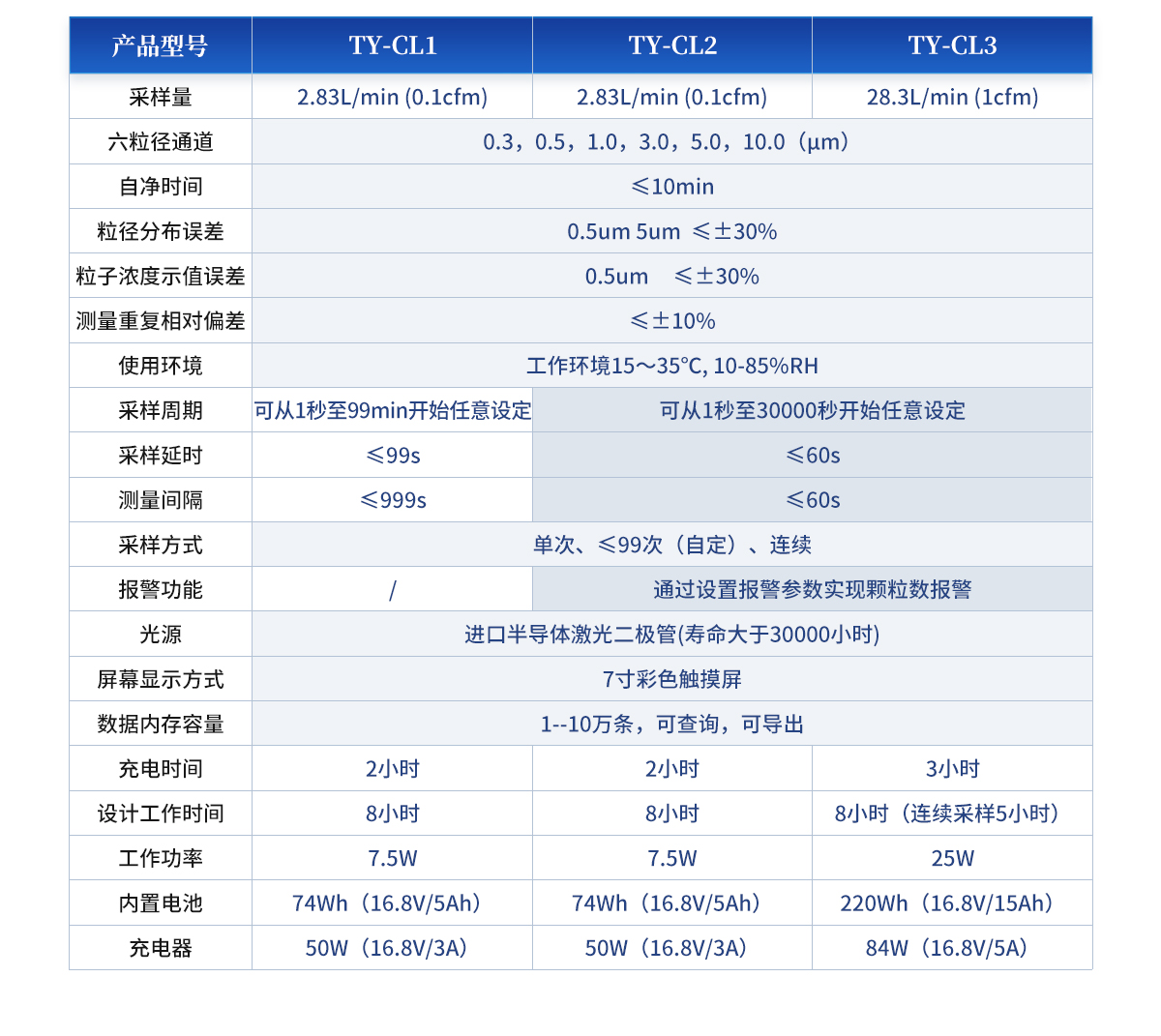| 采樣量:2.83L/min (0.1cfm) | 六粒徑通道:0.3,0.5,1.0,3.0,5.0,10.0(μm) | 自凈時間:≤10min | 粒徑分布誤差:0.5um 5um ≤±30% | 粒子濃度示值誤差:0.5um ≤±30% | 測量重復相對偏差:≤±10% | 使用環(huán)境:工作環(huán)境15~35℃, 10-85%RH | 采樣周期:可從1秒至30000秒開始任意設(shè)定 | 采樣延時:≤60s | 測量間隔:≤60s | 采樣方式:單次、≤99次(自定)、連續(xù) | 報警功能:通過設(shè)置報警參數(shù)實現(xiàn)顆粒數(shù)報警 | 光源:進口半導體激光二極管(壽命大于30000小時) | 屏幕顯示方式:7寸彩色觸摸屏 | 數(shù)據(jù)內(nèi)存容量:1--10萬條,可查詢,可導出。 | 充電時間:3小時 | 設(shè)計工作時間:8小時 | 工作功率:25W | 內(nèi)置電池:220Wh(16.8V/15Ah) | 充電器:84W(16.8V/5A) |