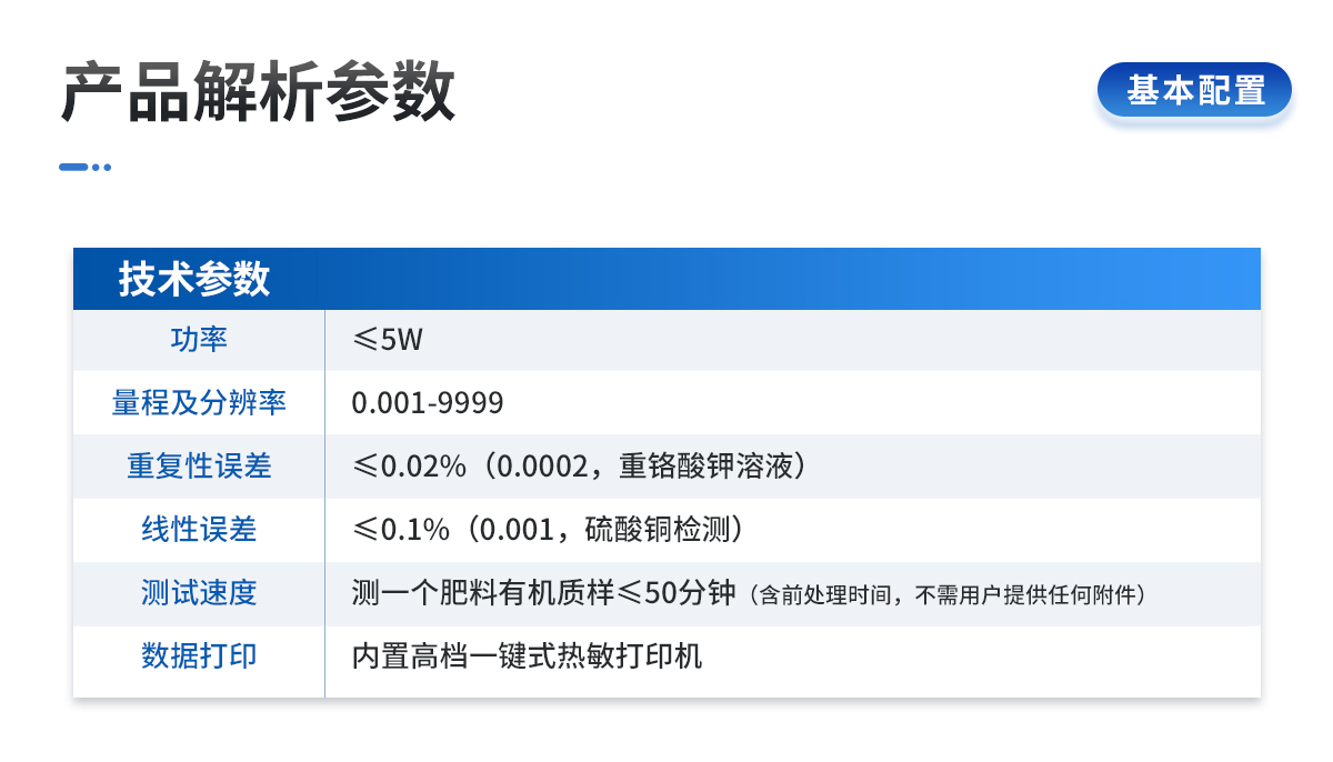 產(chǎn)品描述:儀器特點:可檢測化肥、有機(jī)肥(含葉面肥、水溶肥、噴施肥等)、植株中的有機(jī)質(zhì)、腐殖酸等。安卓智能操作系統(tǒng),采用更加**和人性化操作,儀器標(biāo)配wifi聯(lián)網(wǎng)上傳、4G聯(lián)網(wǎng)傳輸、GPRS無線遠(yuǎn)傳,快速上傳數(shù)據(jù)。采用精密旋轉(zhuǎn)比色池設(shè)計,光源一致性更加**保證檢測精度。一次性可快速檢測12個樣品,極大提升檢測效率,降低檢測【詳情】