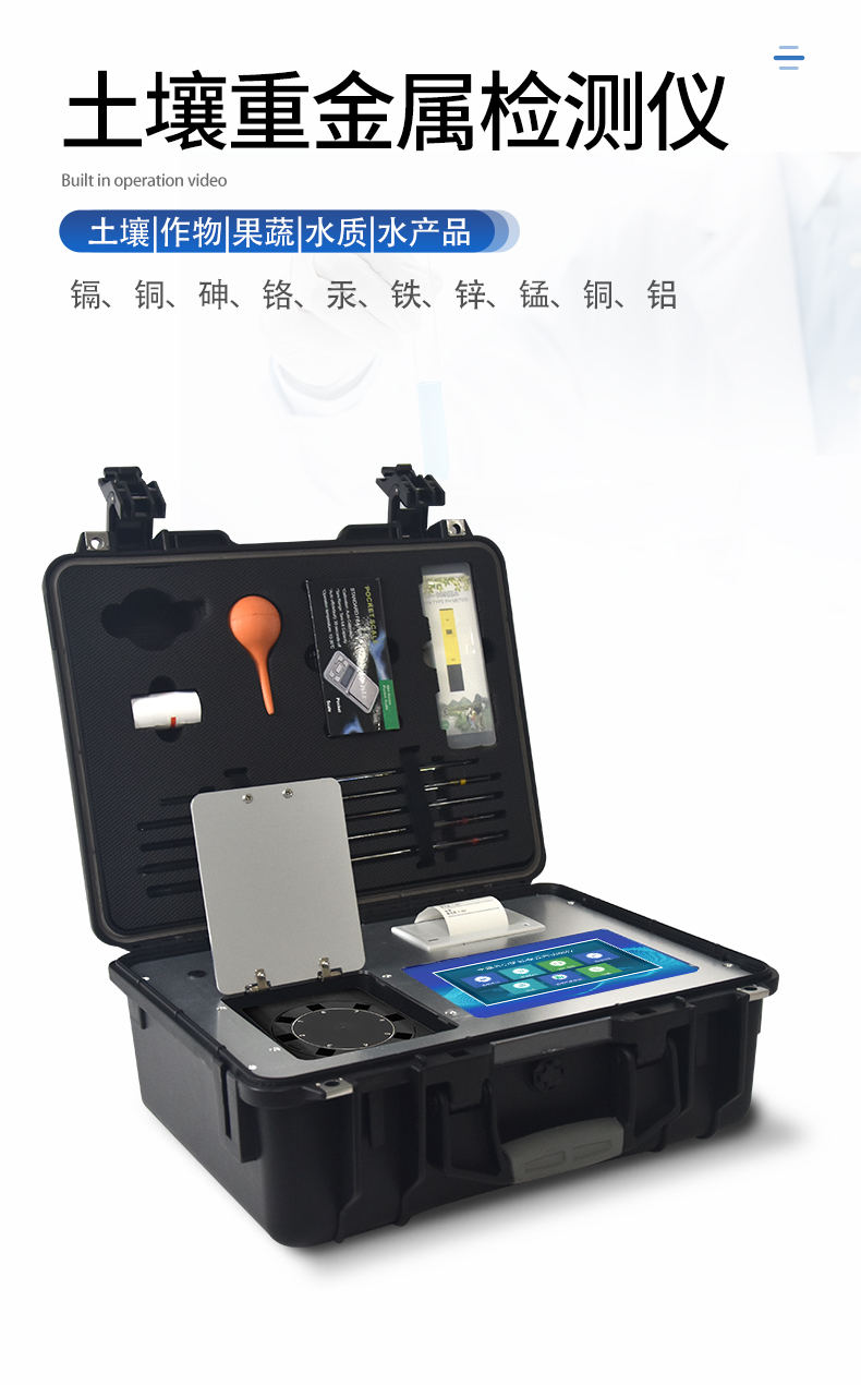 | 性能可靠,工作穩(wěn)定性均優(yōu)于國家標(biāo)準(zhǔn)JJG79-90標(biāo)準(zhǔn)5--6倍,重復(fù)性達(dá)到光柵類分光光度計指標(biāo),采用微處理器技術(shù),單片機(jī)控制,觸摸按鍵,操作簡便。 | 重金屬測試采用聯(lián)合消化和分項測試技術(shù),簡化測試流程,減少測試時間,大大提高測試效率,提高測試精度。 | 擴(kuò)展性強(qiáng),該儀不僅可以專用于重金屬的檢測還可以擴(kuò)展測定土壤、肥料、植株中養(yǎng)分的測試(HM-ZSA型),一機(jī)多用。 | 土壤重金屬檢測儀集藥,器,儀于一體,相當(dāng)于一個小型實驗室, 兩個鋁合金箱體,易于攜帶,便于現(xiàn)場測試,流動服務(wù)。適于基層檢測部門對含有重金屬污染的蔬菜、水果等食品進(jìn)行篩選。 |