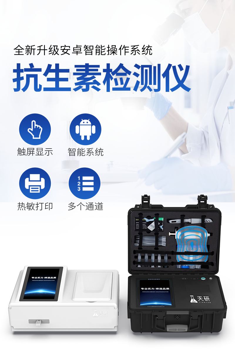 該抗生素檢測儀適用于豬、雞、鴨、羊、牛、牛奶等畜禽肉產(chǎn)品中獸藥殘留,包括抗生素類殘留、瘦肉精激素類殘留和水產(chǎn)品有毒有害物質(zhì)的現(xiàn)場快速篩查定及性定量檢測。 該多功能獸藥殘留檢測儀為集成化肉品安全快速檢測分析設備,可廣泛應用于畜牧養(yǎng)殖場、屠宰場、食品肉產(chǎn)品深加工企業(yè)、食藥監(jiān)局、檢驗檢疫部門、衛(wèi)生部門、高教院校、科研院所、農(nóng)業(yè)部門等單位使用。